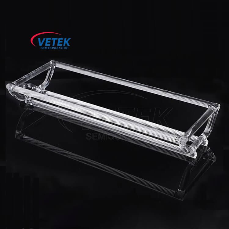 உயர்-வெப்பநிலை பரவல் செயல்பாட்டின் போது சிலிக்கான் செதில் சரியான நிலையை பராமரிக்கிறது மற்றும் சமமாக வெப்பமடைவதை உறுதிசெய்ய குவார்ட்ஸ் படகு உள்ளே துல்லியமாக ஸ்லாட்டுகளை வடிவமைத்துள்ளது. குவார்ட்ஸ் பொருள் நல்ல உயர் வெப்பநிலை எதிர்ப்பு மற்றும் இரசாயன நிலைத்தன்மையைக் கொண்டிருப்பதால், அது சிலிக்கான் செதில்களை மாசுபடுத்தாது, இது உற்பத்தி சூழலின் உயர் தூய்மையை பராமரிக்க உதவுகிறது.